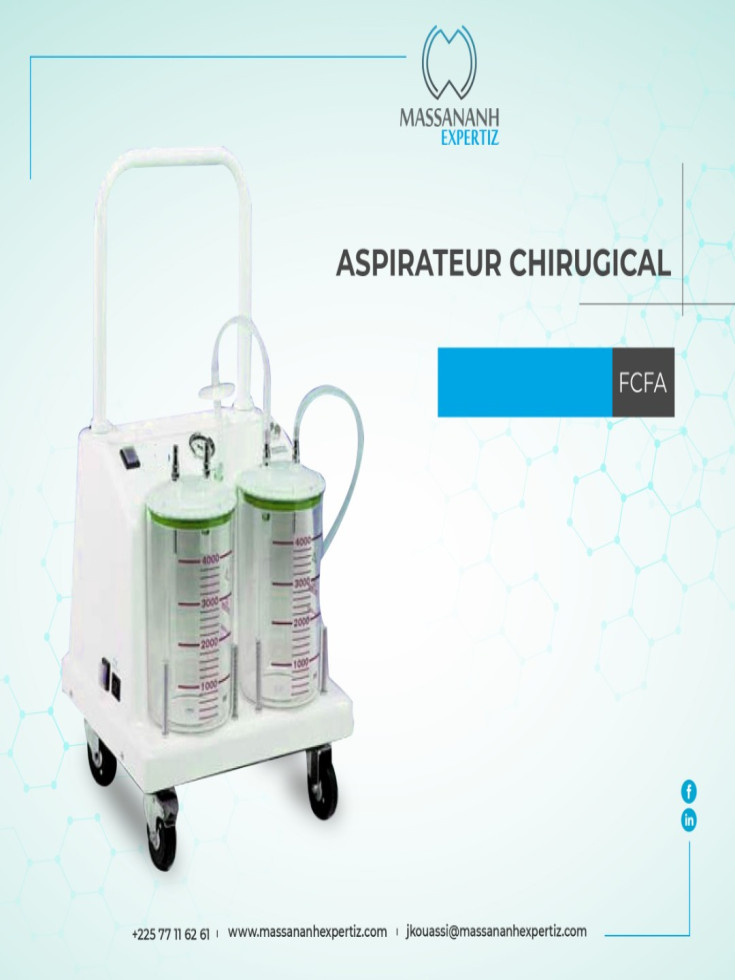 Aspirateur chirurgical sur roue avec un ou deux bocaux de 2 ou 4 litres chacun